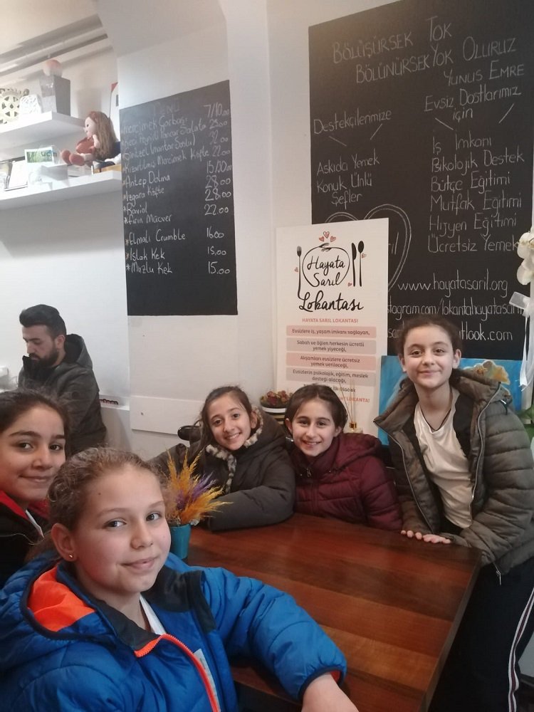 5 Mart 2020 Perþembe günü okulumuz 6.sýnýf ile "Hayata Sarýl Lokantasý" na gittik. Kurum yetkililerinden bilgi aldýk. Evsiz dostlara baðýþta bulunduk. Evsiz dostlarýmýza nasýl destek olabileceðimizle ilgili fikir paylaþýmlarýnda bulunduk.