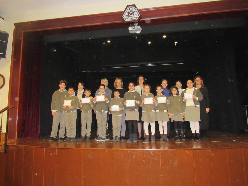 18 Ocak 2019 Cuma günü öðrencilerimiz 2018-2019 Eðitim Öðretim Yýlýnýn 1. dönemini tamamlayarak karnelerini ve yüksek not ortalamalarý elde ederek teþekkür ve takdir belgelerini alarak yarýyýl tatiline girdiler.