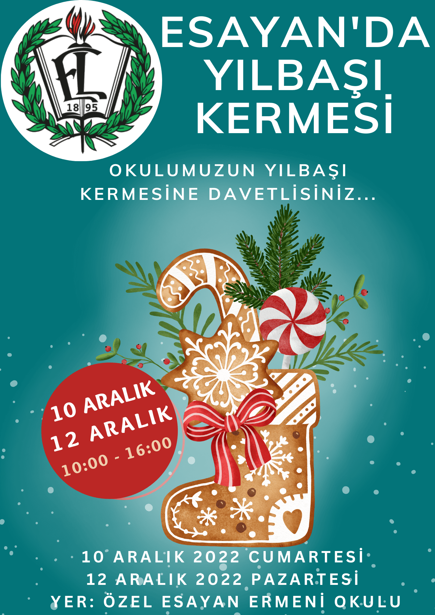 Okulumuzun yılbaşı kermesine davetlisiniz... 10 Aralık 2022 Cumartesi ve 12 Aralık 2022 Pazartesi tarihlerinde, 10.00 - 16.00 saatleri arasında okulumuzda gerçekleşecektir.