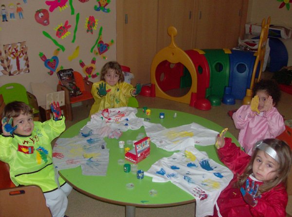 Önlüklerimizi giydik, boyalarýmýzý aldýk t-shirtlerimize el baskýlarý yaptýk...