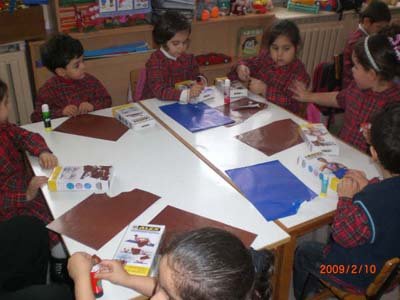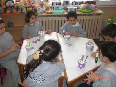 Sevgililer günü dolayýsýyle yoðurt kaplarýmýzdan saksýmýzý yaptýk, dondurma çubuklarýndan çiçeklerimizin dallarýný, kalplerden de çiçeklerimizi hazýrladýk. En sevdiðimiz kiþilerin fotoðraflarýný kalplerimizin üzerine yapýþtýrýp sevdiklerimize hediye ettik.