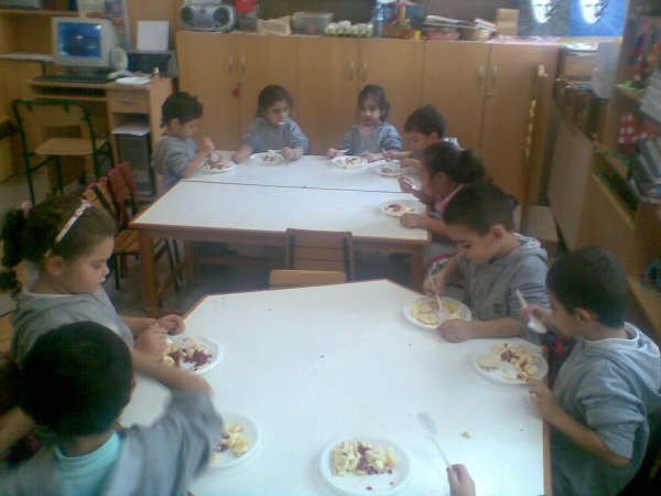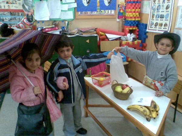 Meyve ve sebzeleri tanýma amacý ile sýnýfýmýzda bir manav ortamý oluþturduk. Miniklerimiz alýþveriz yapýp aldýklarý meyveleri kesip meyve salatasý yaptýktan sonra afiyetle yediler.