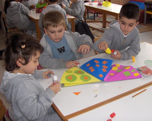 Daireler katlanarak þemsiye yapýldý, üzerine öðrendiðimiz geometrik þekiller yapýþtýrýdý.