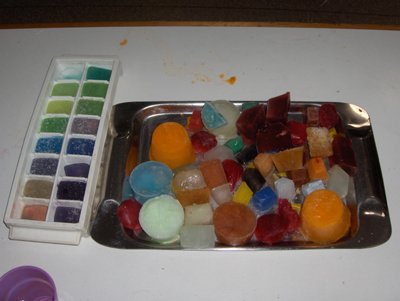Meyve sularýndan renkli buzlar hazýrladýk