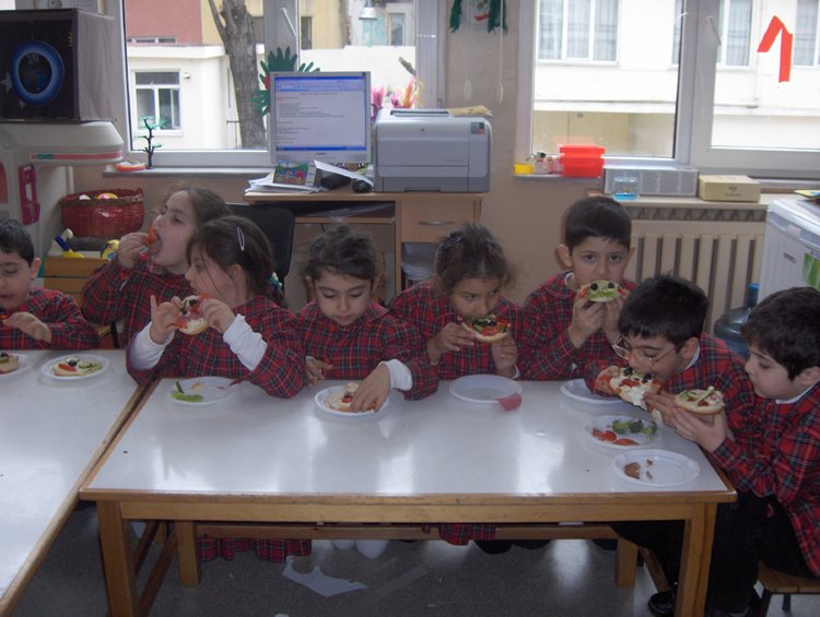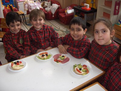 Evden malzemeler getirip komik suratlý sandviçler yaptýk sonra da afiyetle yedik.