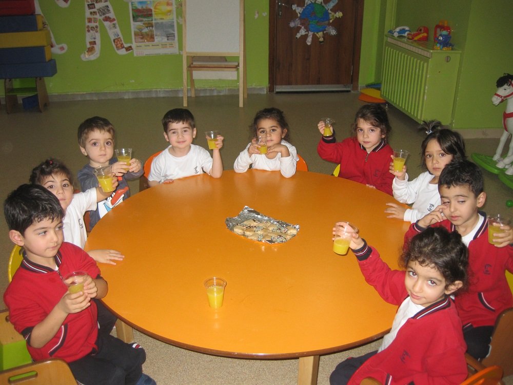 Sýnýfýmýzda her ay mutfak etkinlikleri yapýlýr. Bu yapýlan çalýþmada çocuklarýmýz etkin rol alýrlar. Bu ay çocuklarýmýzla bisküvili pasta, elma þekeri ve meyve salatasý yaptýk ve portakal suyu sýktýk.