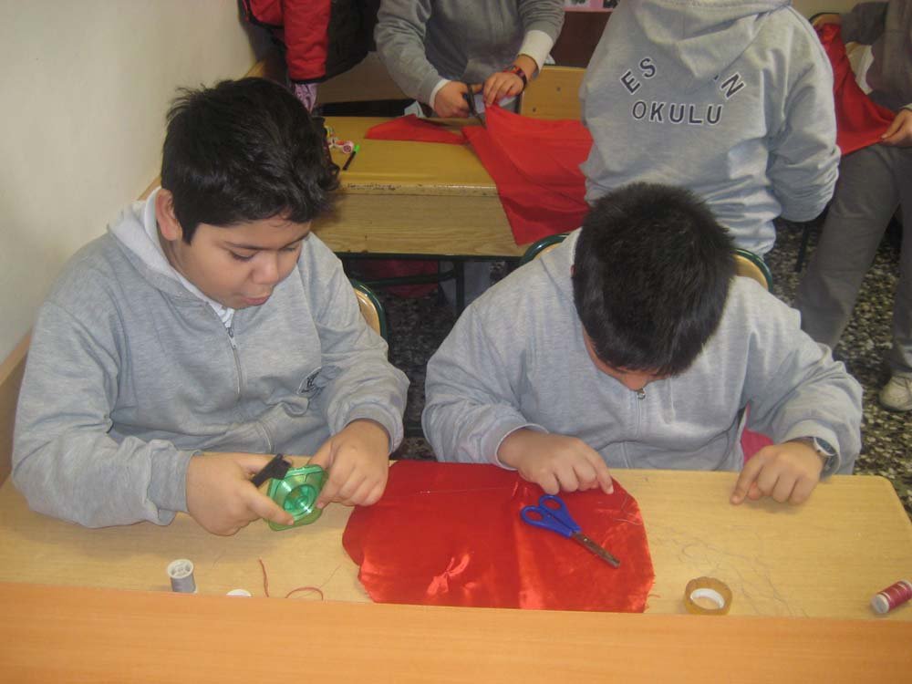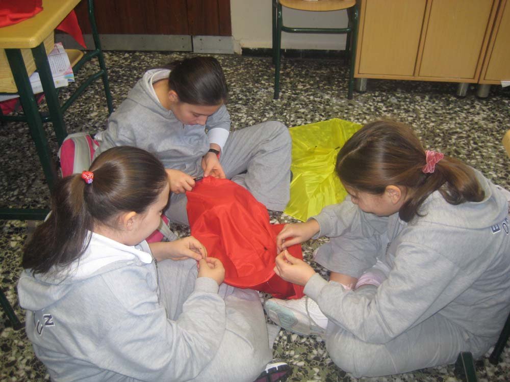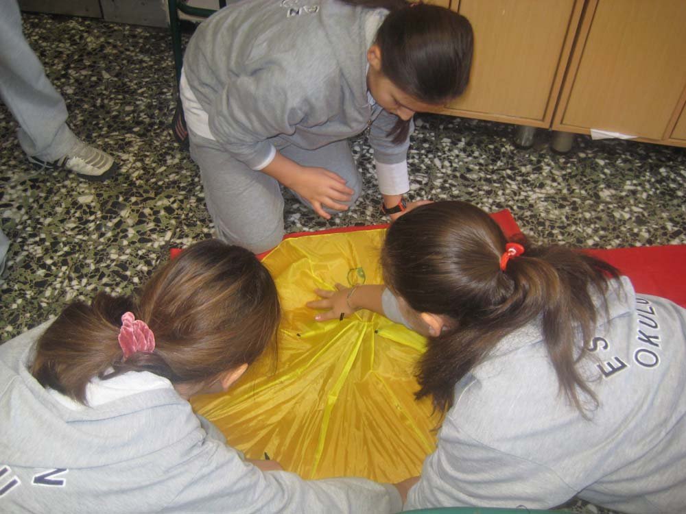 5. sýnýf öðrencileri kumaþlarla paraþüt yapma yarýþmasý yaptýlar...