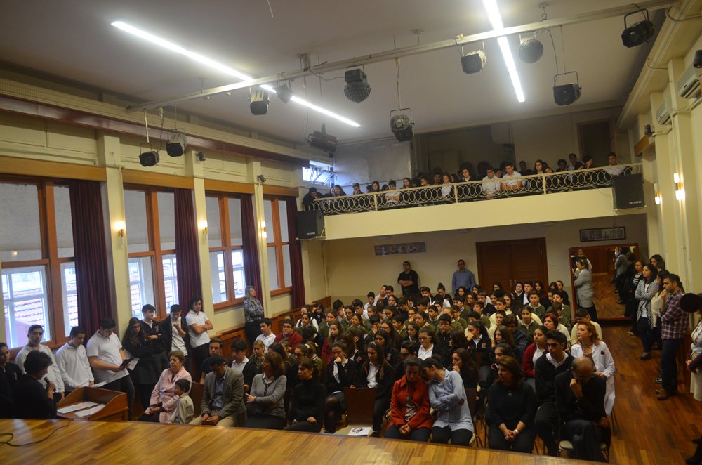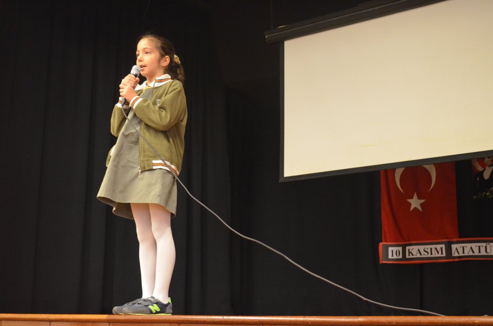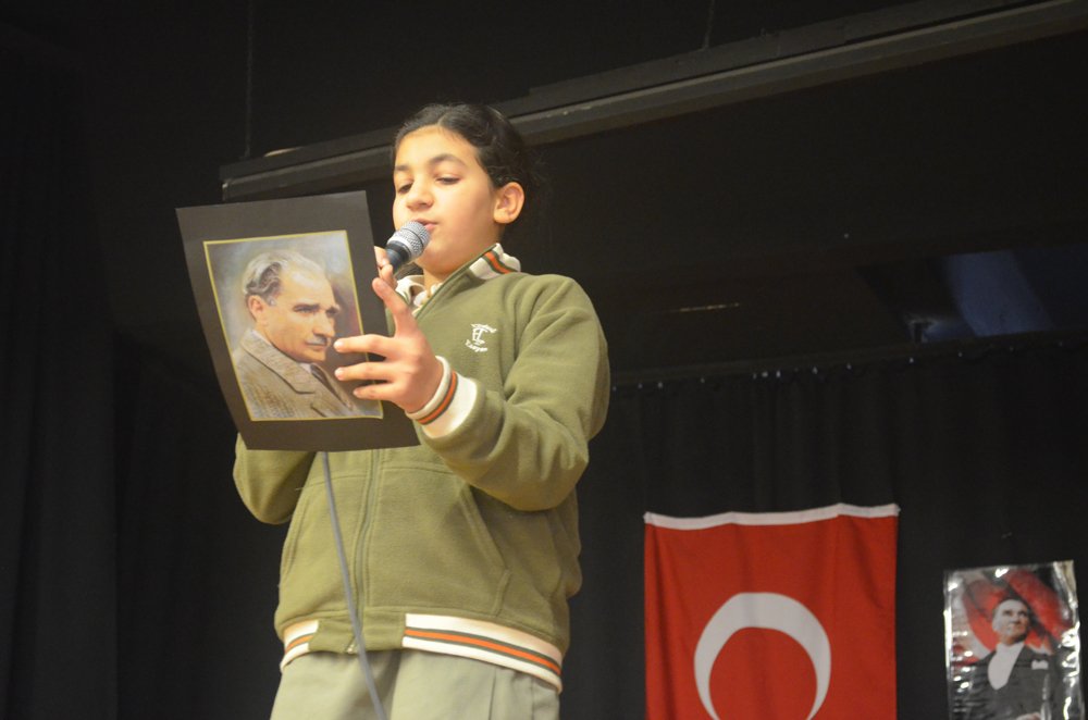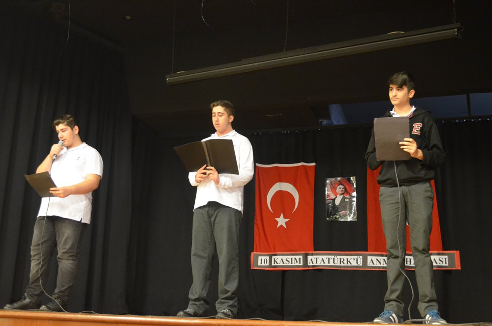 Törenimiz saat dokuzu beþ geçe siren sesi ile birlikte Ulu Önder Atatürk için saygý duruþu ve Ýstiklâl Marþýnýn okunmasý ile baþladý. Ýlköðretim ve lise öðrencilerimizin günün anlam ve önemini belirten konuþmalarý, þiirleri ve barkovizyon gösterileri ile devam etti.