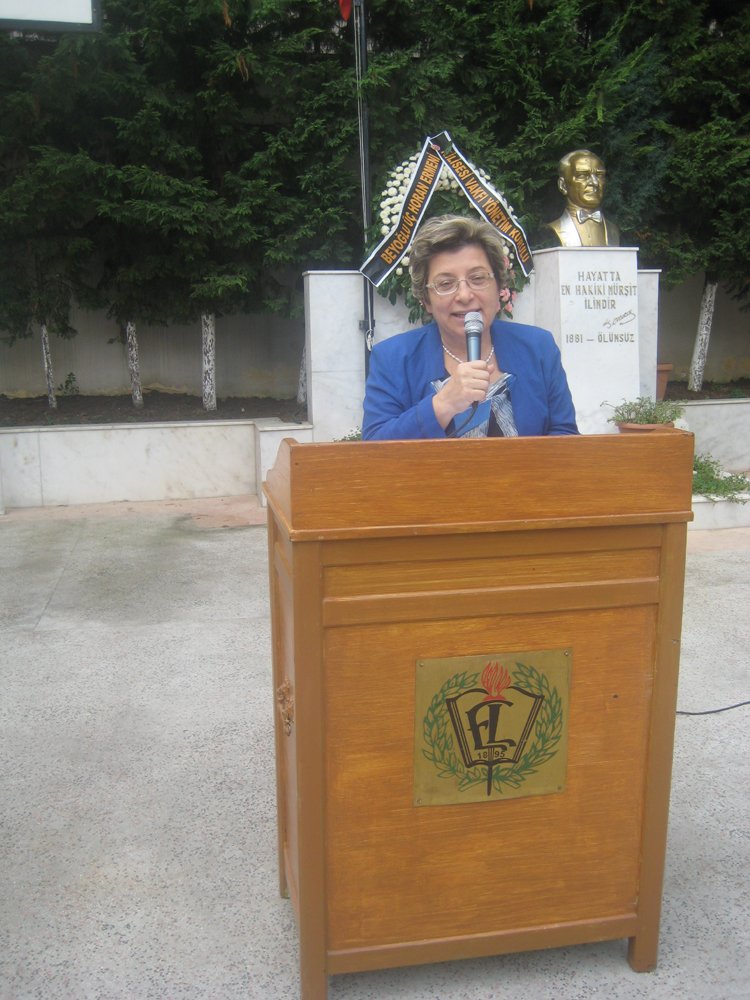 Ýlk ve Ortaokul Müdürümüz Sayýn Arlin Yeþiltepe konuþmasýný yaparken...