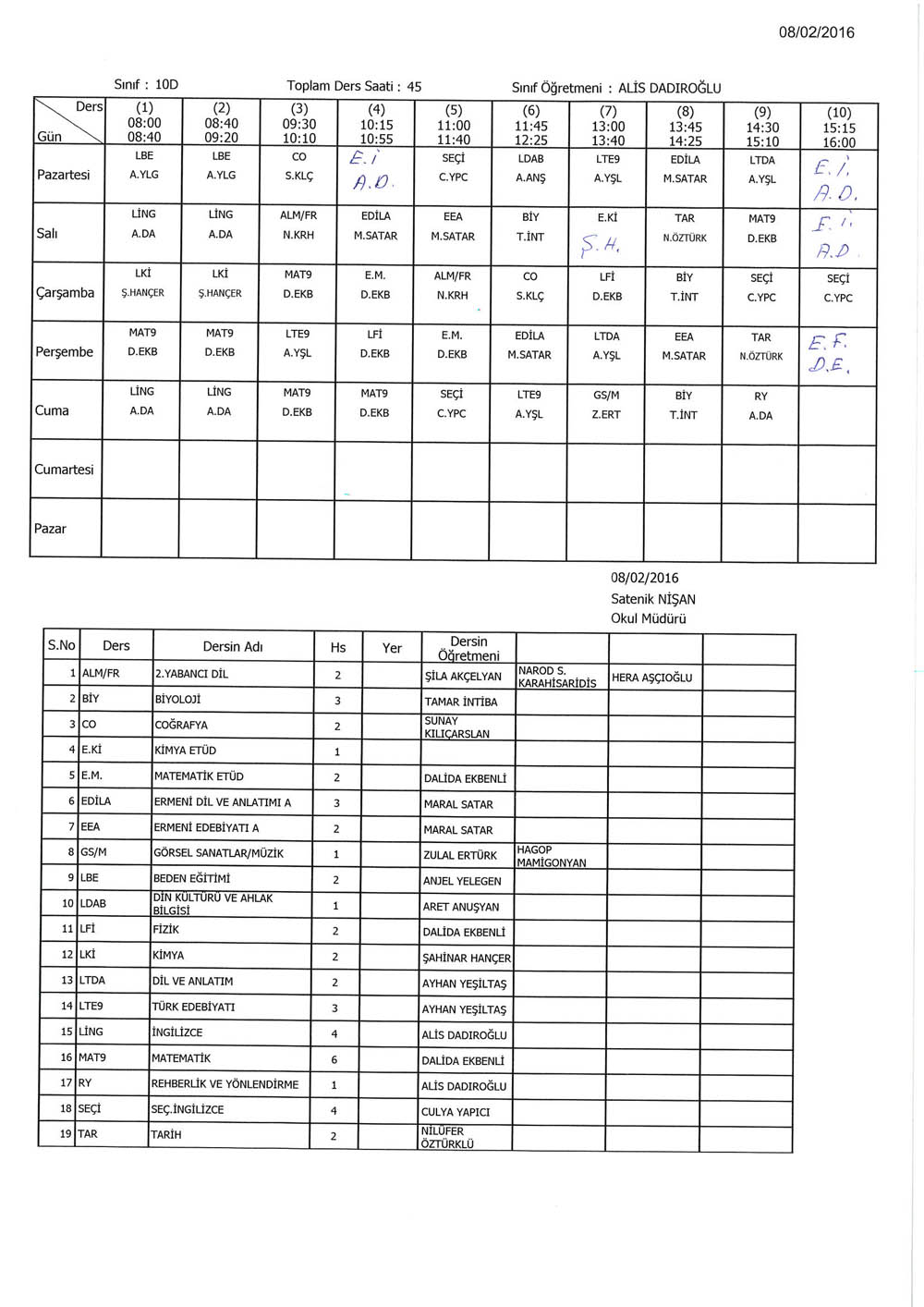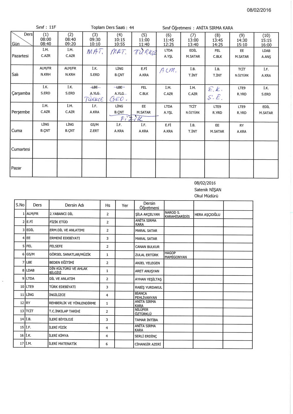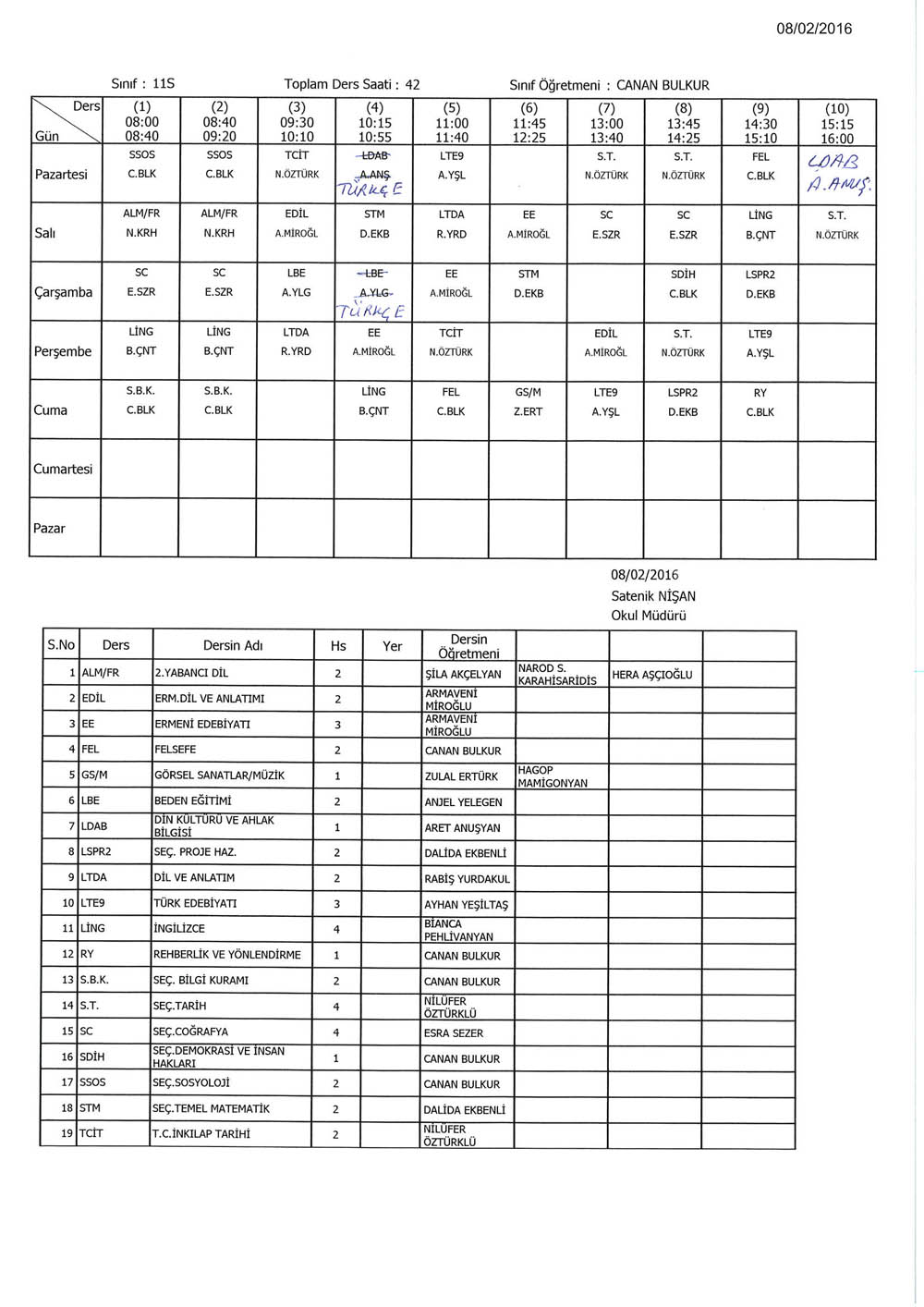 Ders Programýmýzda Deðiþiklik...