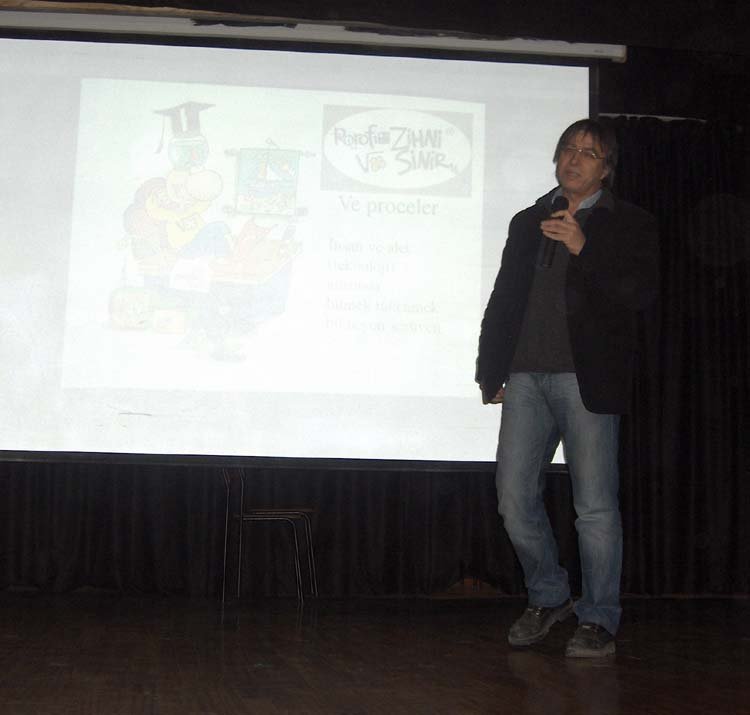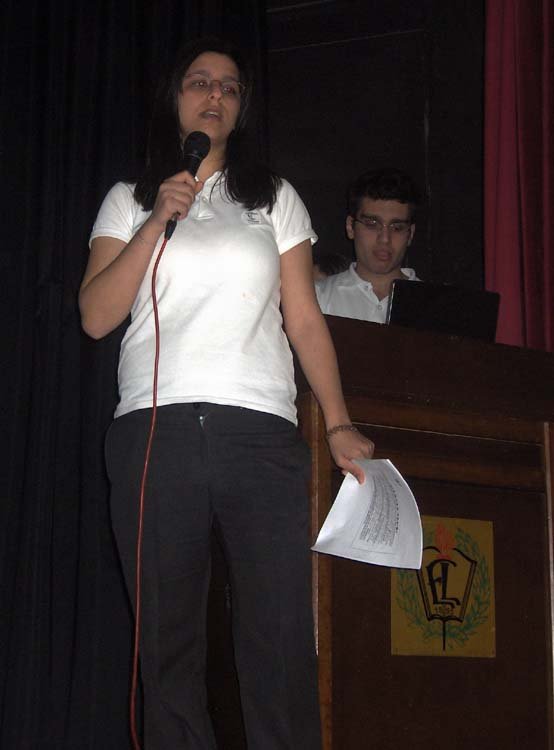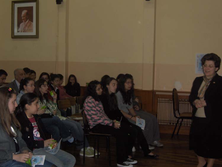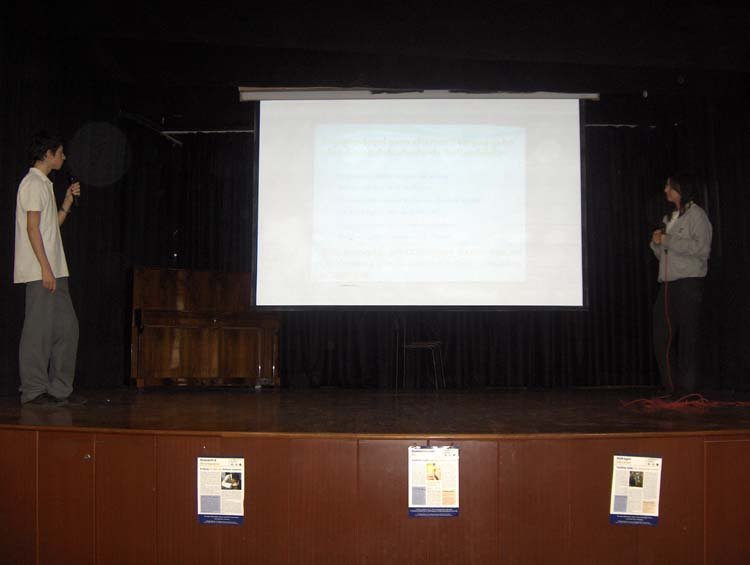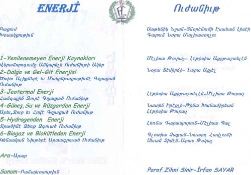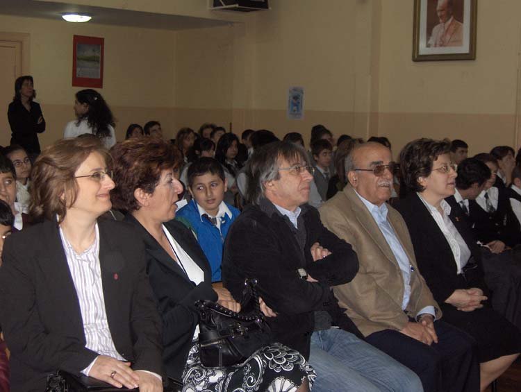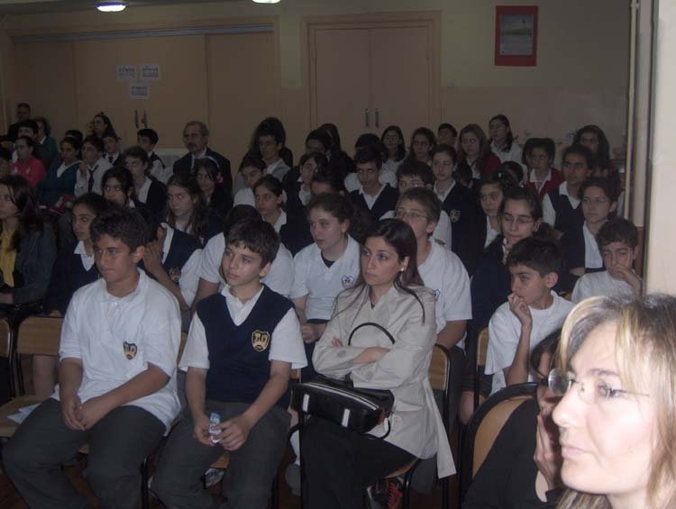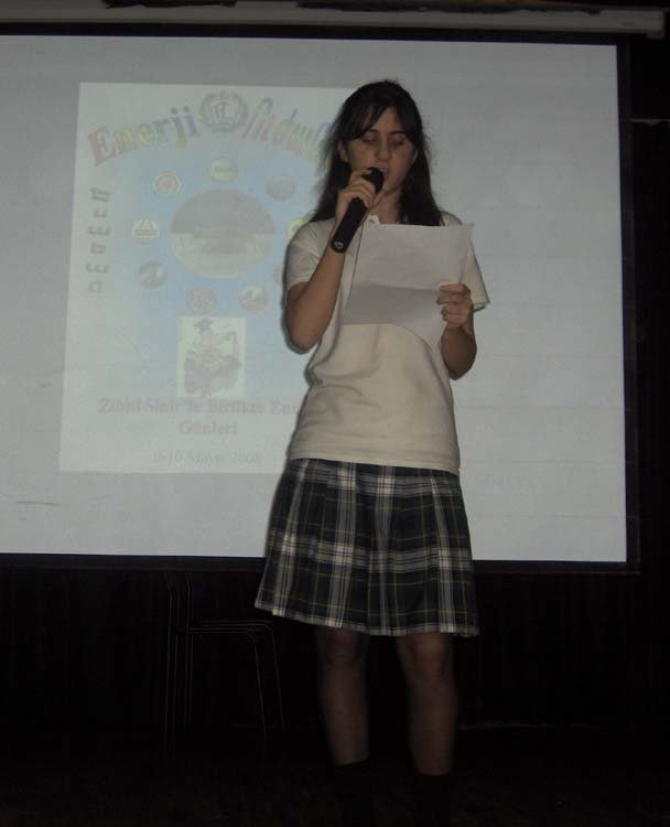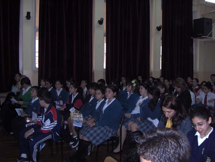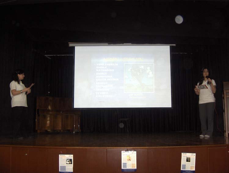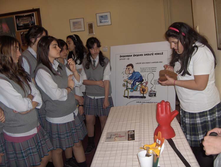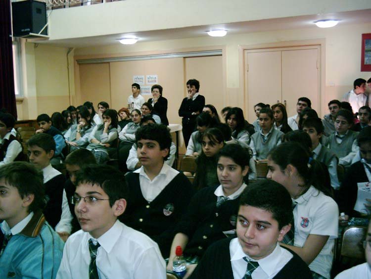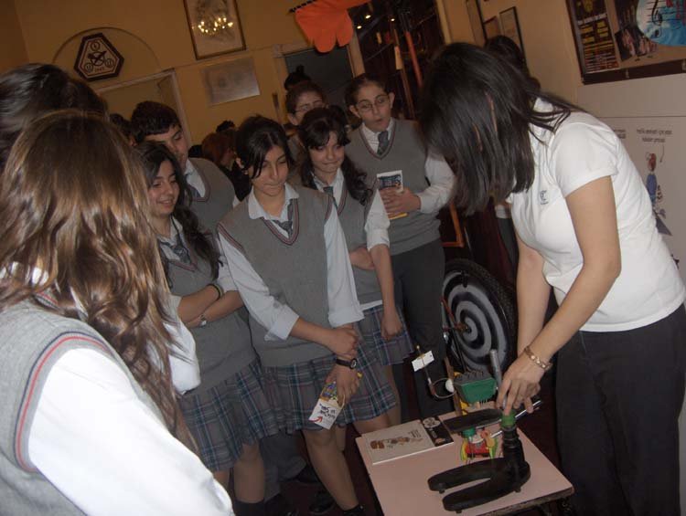 Esayan'da 9-10 Mayýs tarihlerinde, diðer okullarýmýzýn davetli olarak katýldýðý sunumlar gerçekleþti. Programýmýz dört kez tekrarlandý. 9 Mayýs Cuma sabahki oturuma Kalfayan, Yeþilköy, Topkapý ve Esayan , öðleden sonraki oturuma Ortaköy, Karagözyan, Feriköy ve Pangaltý Mýðitaryan, 10 Mayýs Cumartesi sabahki oturuma Sahagyan, Bomonti Mýðitaryan, Bezciyan ve Samatya Anarad Hýðutyun, Öðleden sonraki oturuma ise Getronagan, Pangaltý Mýðitaryan ve Esayan Lisesi öðrencileri katýldý. Okul müdürümüz Sayýn Satenik Nýþan'ýn açýlýþ konuþmasý ve öðrencimiz Karun Malhas'ýn konuyu anlatan Ermenice açýklamalarýndan sonra Öðrencilerimiz, Fen gurubu öðretmenleri (Elizabet Minaslý, Madlen Toraman, Þahinar Hançer, Serli Erdinç, Ayda Kayaer, Tamar Daðlýyan ve Anita Kara) rehberliðinde hazýrladýklarý Enerji konusundaki sunumlarý sergilediler. Sunumlardan sonra verilen arada, öðrencilerimiz kendi hazýrladýklarý deneysel çalýþmlarý ve Zihni Sinir Projelerini gelen misafir öðrencilere sunma fýrsatý buldular. Programýn ikinci bölümünde ise Ýrfan Sayar (Zihni Sinir) çalýþmalarýndan örnekler verdiði bir sunum yaptý.