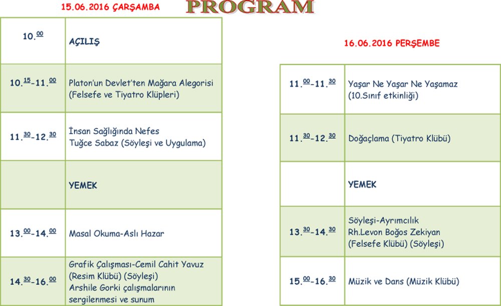 15-16 Haziran 2016 tarihlerinde okulumuzda aþaðýdaki programýn uygulandýðý bir festival düzenlendi.