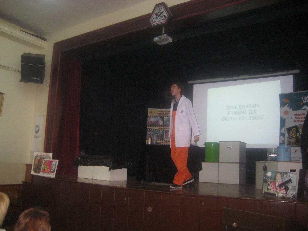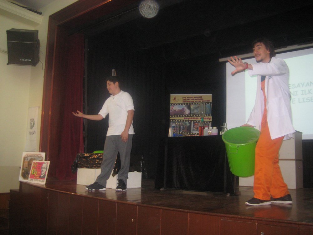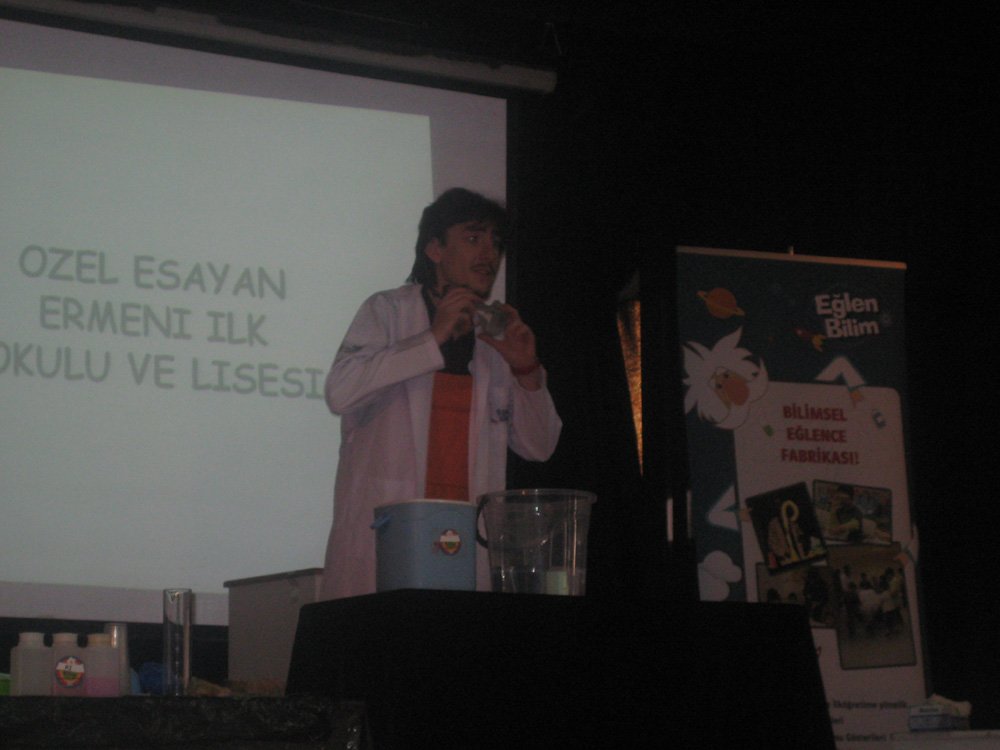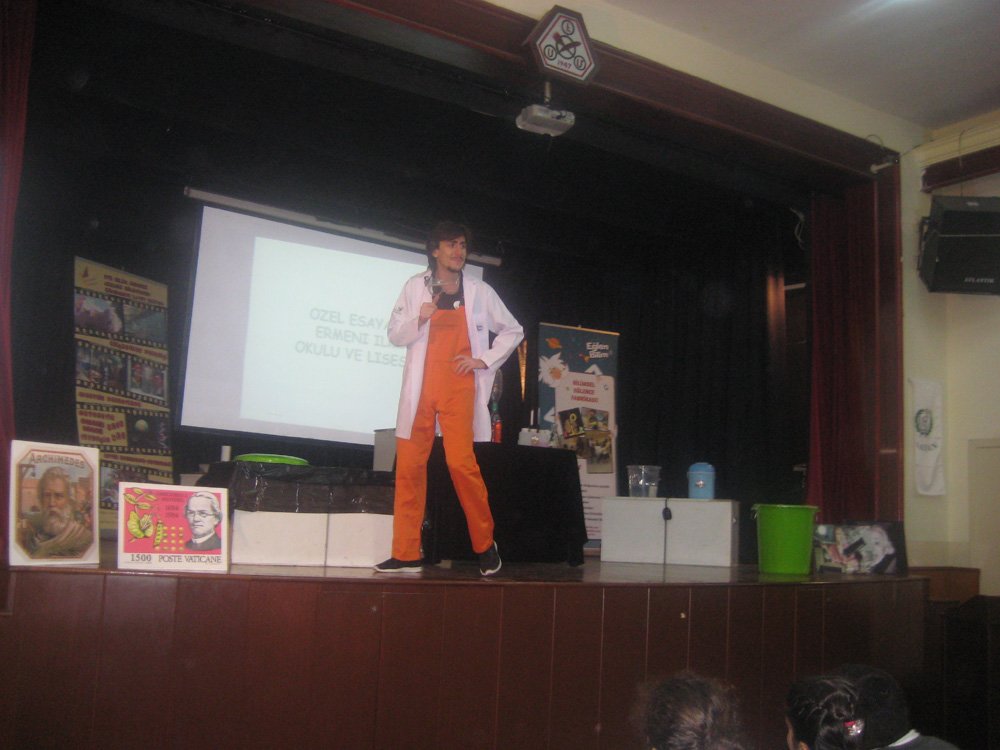 Bunun dýþýnda Ýstanbul Teknik Üniversitesi'nin Bilimsel Eðlence Merkezi Koordinatörü Onur Berk Aslanoðlu okulumuz salonunda interaktif bir þekilde bilimsel olaylar ve uygulamalar yaptý. Öðrenciler bu etkinliðe de katýldýlar.