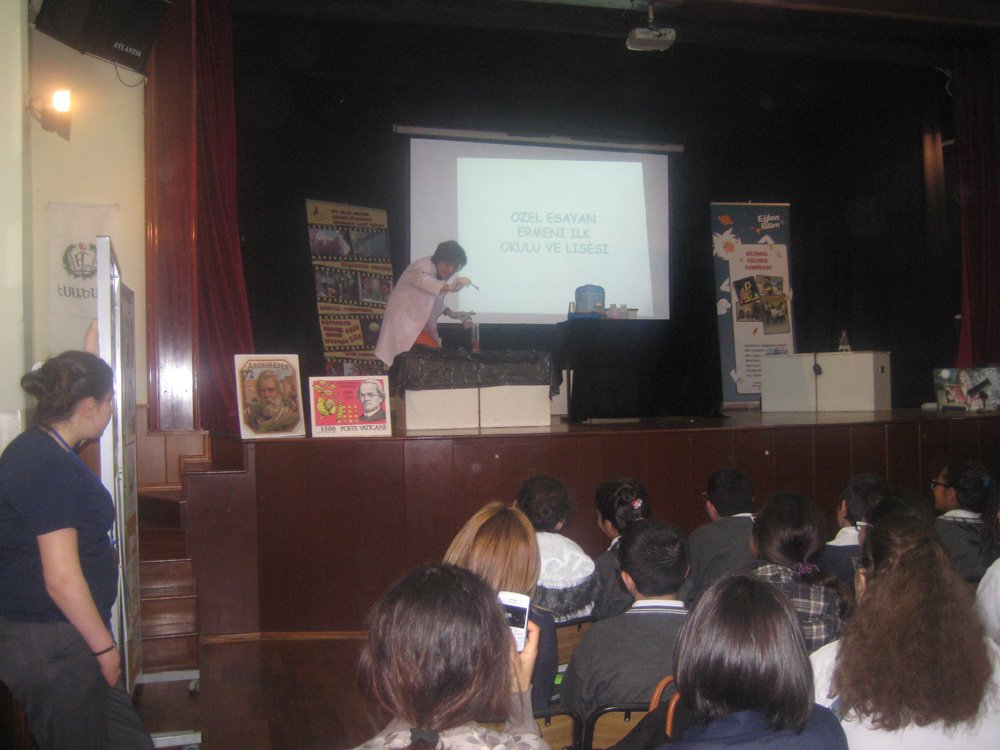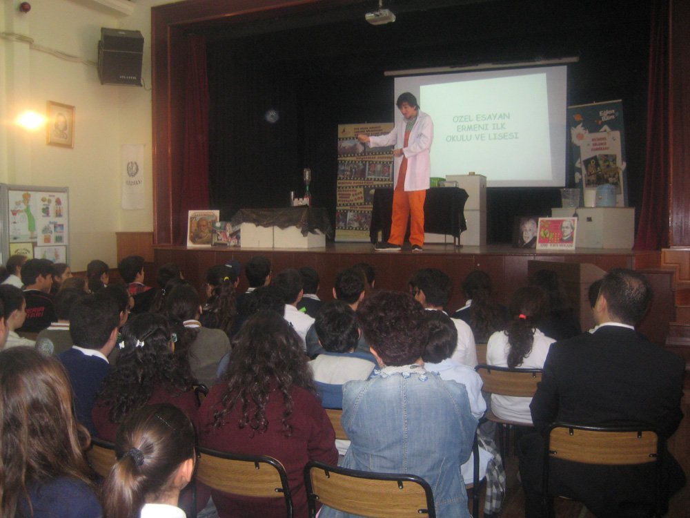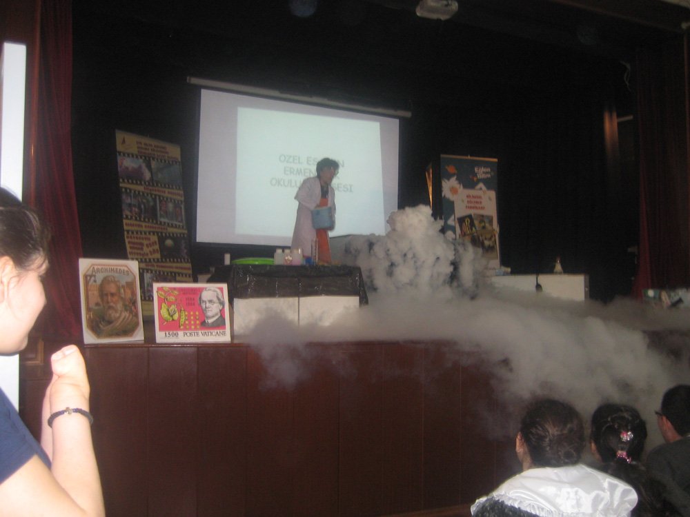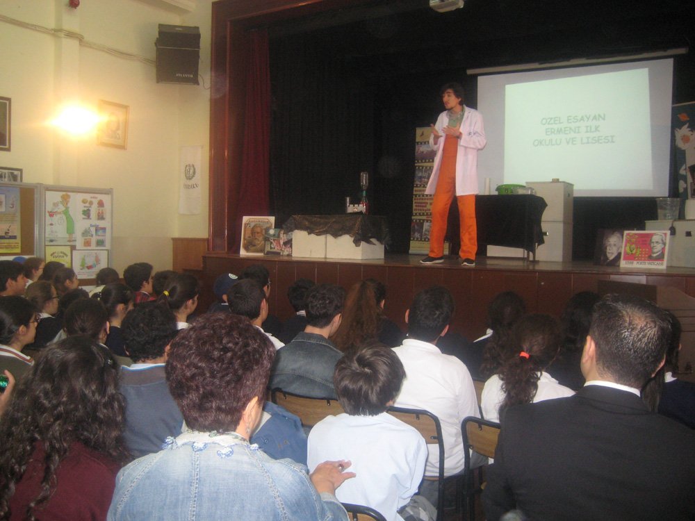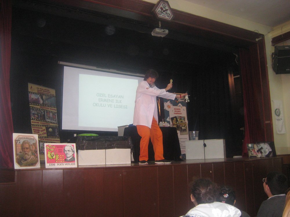 Bunun dýþýnda Ýstanbul Teknik Üniversitesi'nin Bilimsel Eðlence Merkezi Koordinatörü Onur Berk Aslanoðlu okulumuz salonunda interaktif bir þekilde bilimsel olaylar ve uygulamalar yaptý. Öðrenciler bu etkinliðe de katýldýlar.