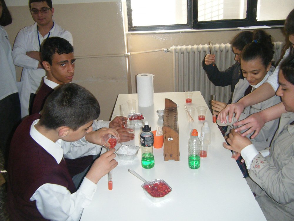 Okulumuzun 6., 7., 8., 9., 10. ve 11. sýnýf öðrencilerinin Fen grubu öðretmenlerimiz rehberliðinde hazýrladýðý etkinliðe 12 okulumuzun 8. sýnýf öðrencilerinden oluþan yaklaþýk 180 kiþilik bir öðrenci grubu katýldý. Laboratuarlarda deneyler, sýnýflarda ise etkileþimli tahta ile uygulamalar ve fen etkinlikleri yapýldý. Misafir öðrenciler de atölye çalýþmalarý yapýp, interaktif olarak etkinliklere katýldýlar. Bu çalýþmalar sonunda kendi yaptýklarý modelleri beraberlerinde götürdüler.