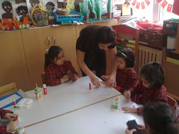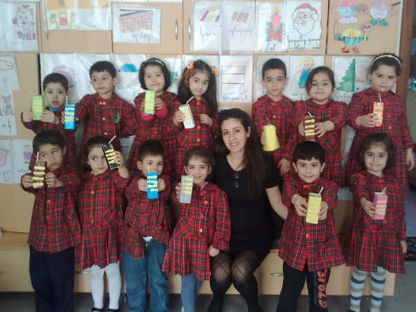 Aile Katýlým Etkinliðimiz Meyvesuyu Kutularý ile Telefon... Bu hafta Can'ýn mamasý sýnýfýmýza konuk oldu. Bizlere meyve sularý getirip önce içmemizi istedi, daha sonra o boþ kutulardan telsiz telefon yaptýrdý.