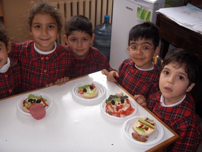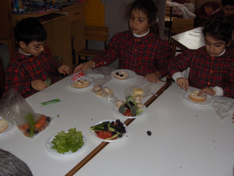 Evden malzemeler getirip komik suratlý sandviçler yaptýk sonra da afiyetle yedik.