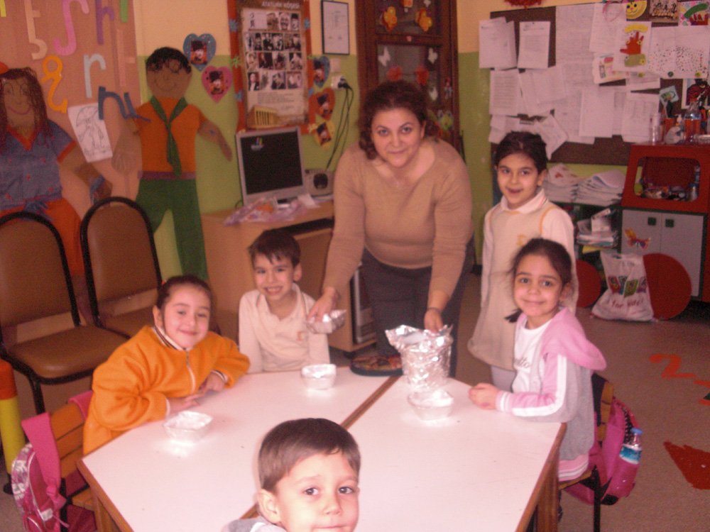 Lia'nýn mamasý sýnýfýmýza konuk olup bizlere fasulye diktirdi...