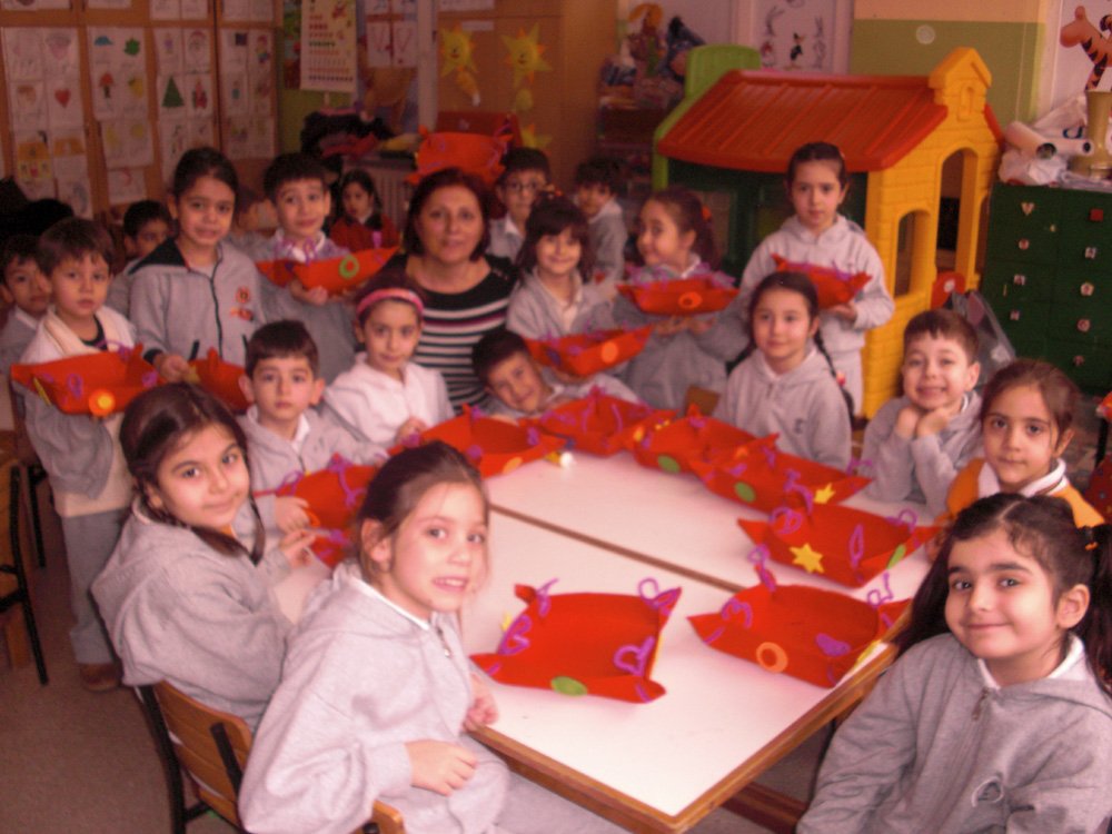Azad'nýn yayasý sýnýfýmýza konuk olup bizlere keçeden ekmek sepetleri yaptýrdý...