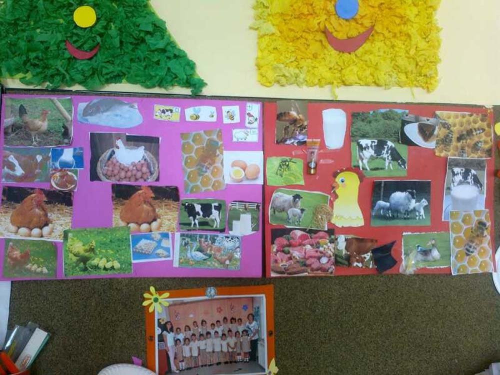 Hayvanlar ve onlardan yararlandýðýmýz besinlerin resimlerini bulup, grup çalýþmasý yaptýk.