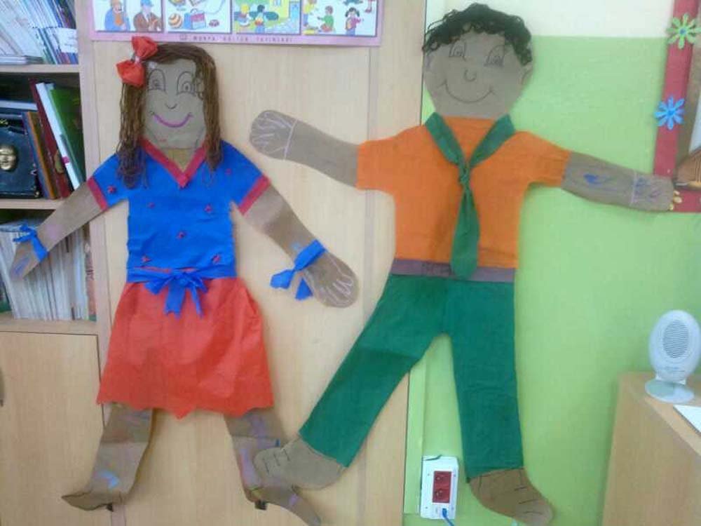 Kýz ve erkek arasýndaki farklarý konuþup, sýnýfýmýzýn duvarýna craft kaðýtlarýndan kýz ve erkek resimlerini grup çalýþmasýyla çalýþtýk.