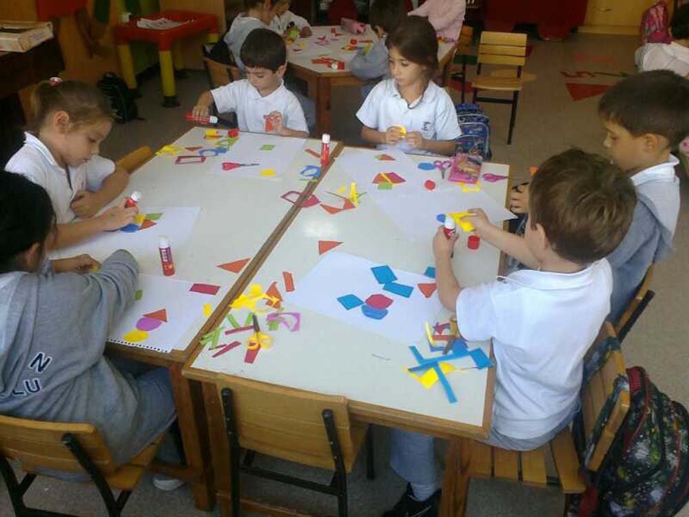 Geometrik þekillerle kompozisyonlar oluþturduk.