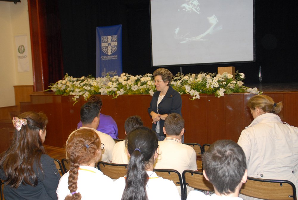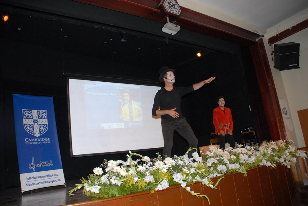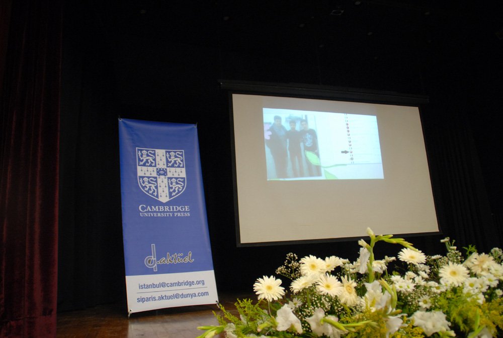 Lise Müdürümüz Satenik Nýþan'ýn giriþ konuþmasý ve baþarý dileklerinini ardýndan yarýþmaya baþlamadan önce Cambridge Yayýnevi temsilcilerinden Paul Zaraga bir etkinlik düzenledi.